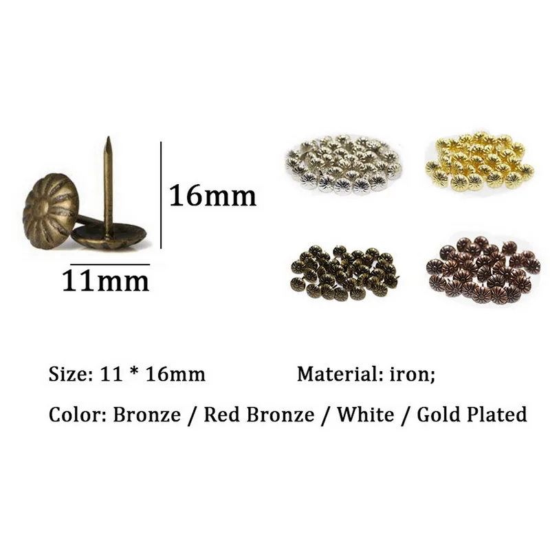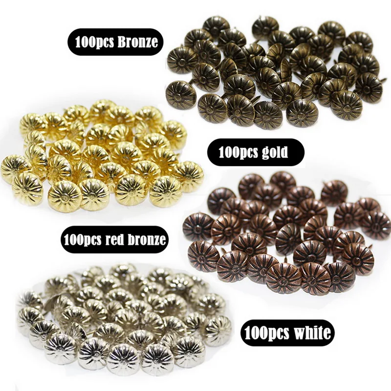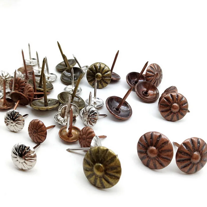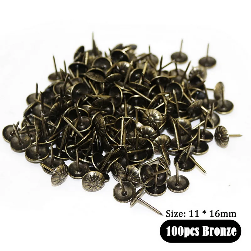 100pcs Antique Brass Upholstery Nail Jewelry Gift Wine Case Box Sofa Decorative Tack Stud Pushpin Doornail Hardware